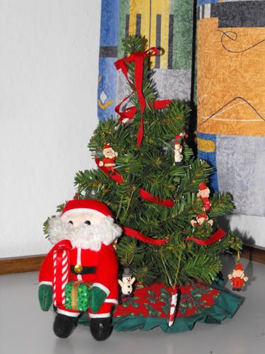 Yesterday I had a surprise in my mailbox - there was an orange slip there, which serves to tell me that I got a package at the post office. I've gotten these before, so I wasn't unfamiliar with what I supposed to do. The deal was that I wasn't expecting anything. Before, I always was expecting the packages, but this time it came and I didn't know what it was. When I got the package at the post office today, I was really excited to see that Grandma Teresa and Pappy Lee sent it to me. "And what was in it?" you ask. A Christmas tree! I couldn't wait to get home and put it up. My room seems a little homier now.